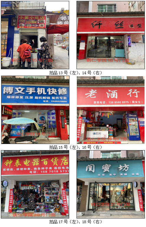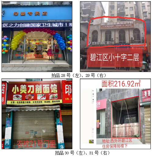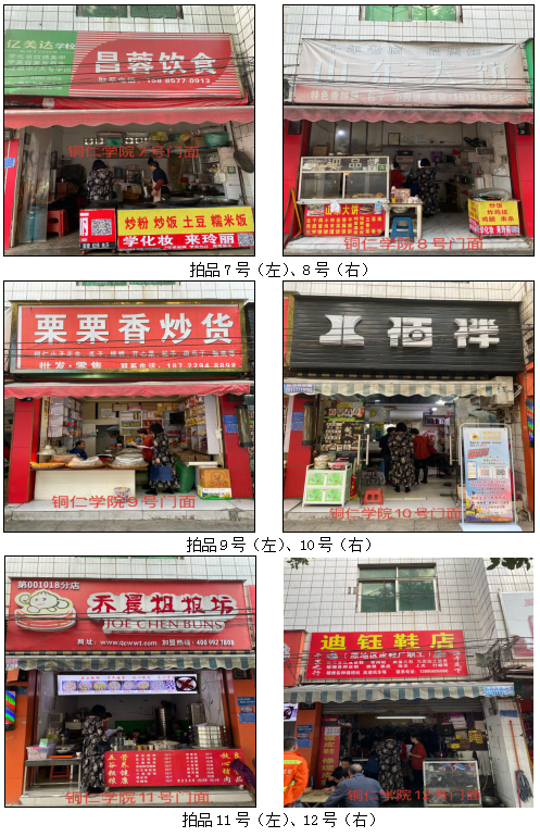 拍品34至46號標的位于銅仁市清水大道實驗小學(xué)東校區(qū),面積11.88——33.92㎡,租賃期3年(2021.04.01至2024.03.31止);