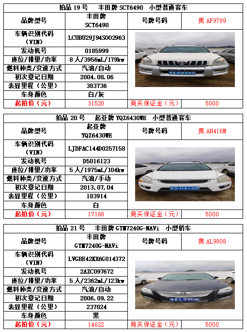 別克牌、豐田牌、指南者牌、索蘭托牌、黃海牌、森林人牌、普瑞維亞牌、三菱牌、起亞牌、五十鈴牌等共計(jì)21輛車。