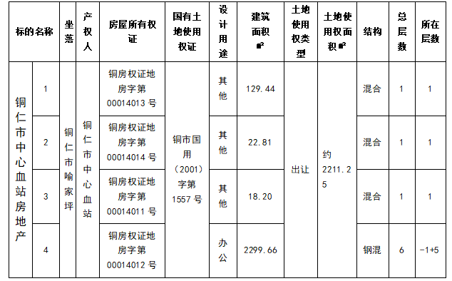標的名稱:銅仁市中心血站房地產(chǎn)