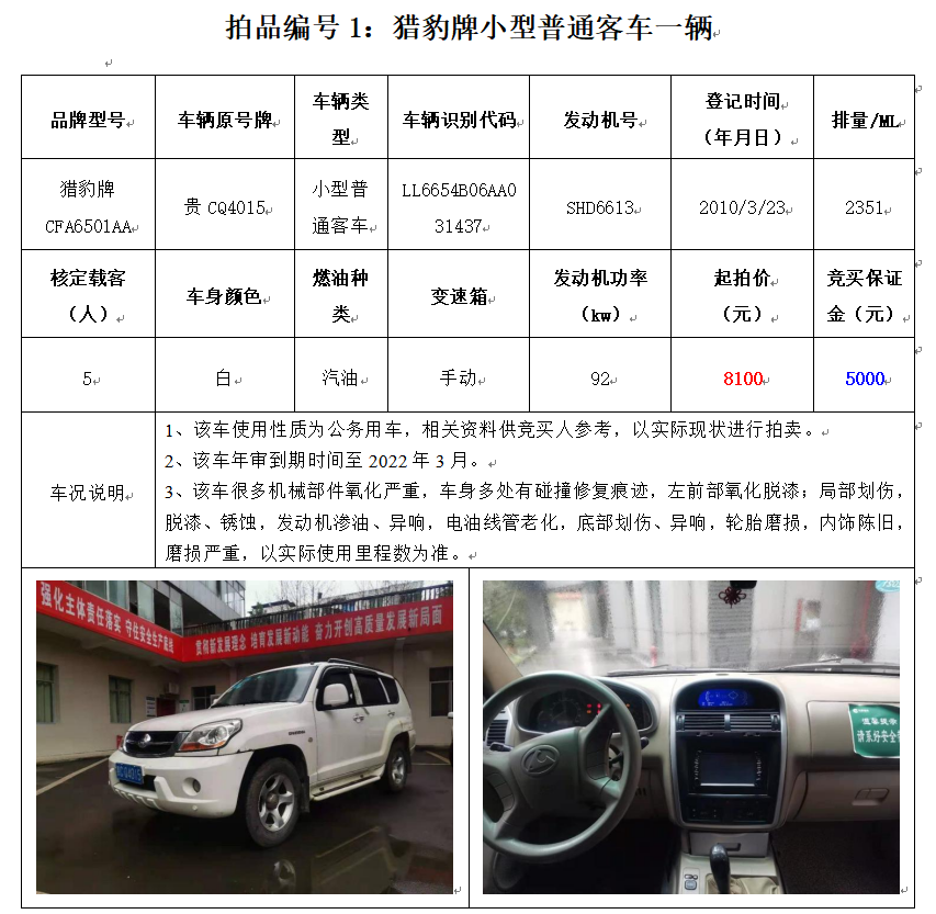 貴州春秋車輛、罰沒物資拍賣公告