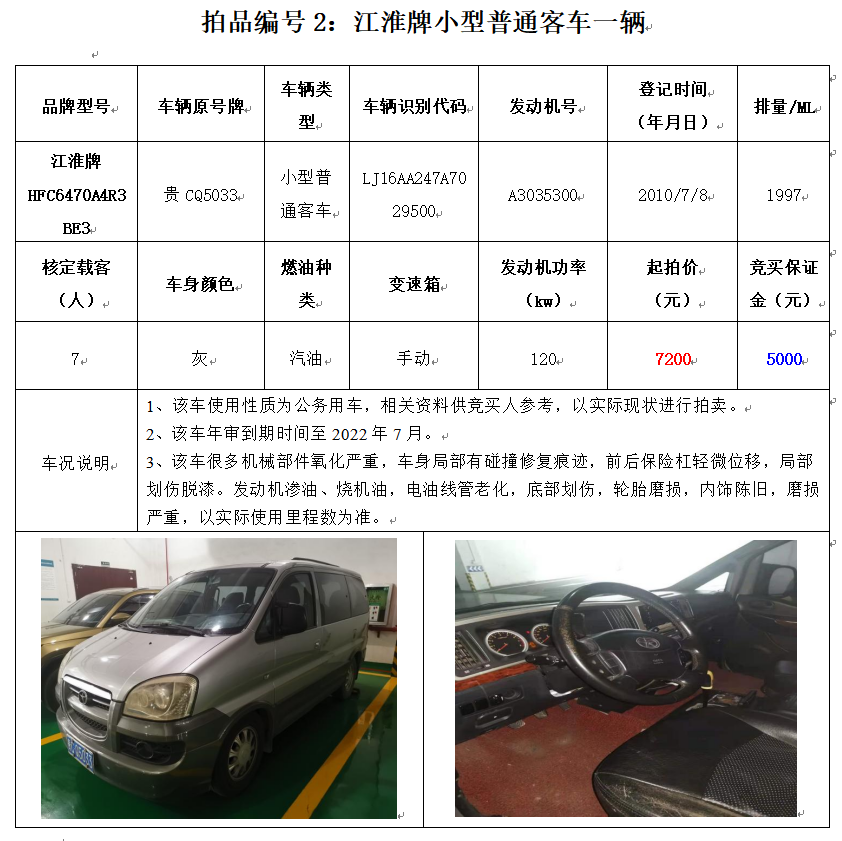 獵豹牌CFA6501AA小型普通客車1輛、江淮牌HFC6470A4R3BE3小型普通客車1輛、上匯SH6492中型普通客車1輛,別克牌SGM6529ATA小型普通客車1輛,蒙迪歐牌CAF7230A小型轎車1輛,共計5輛。