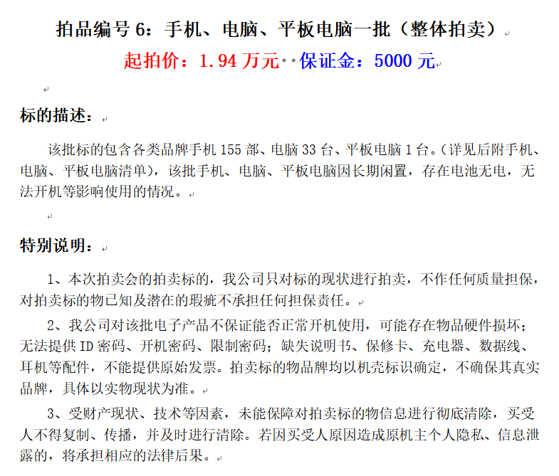 手機、電腦、平板電腦等電子產品一批(整體拍賣)