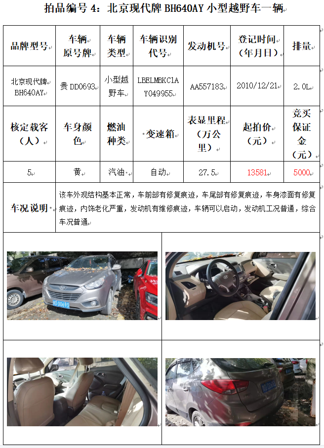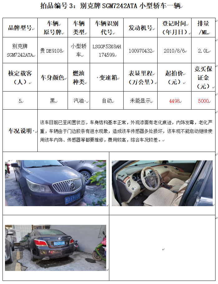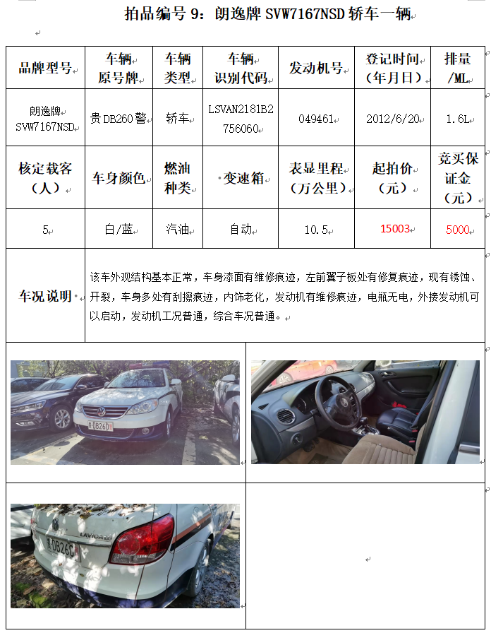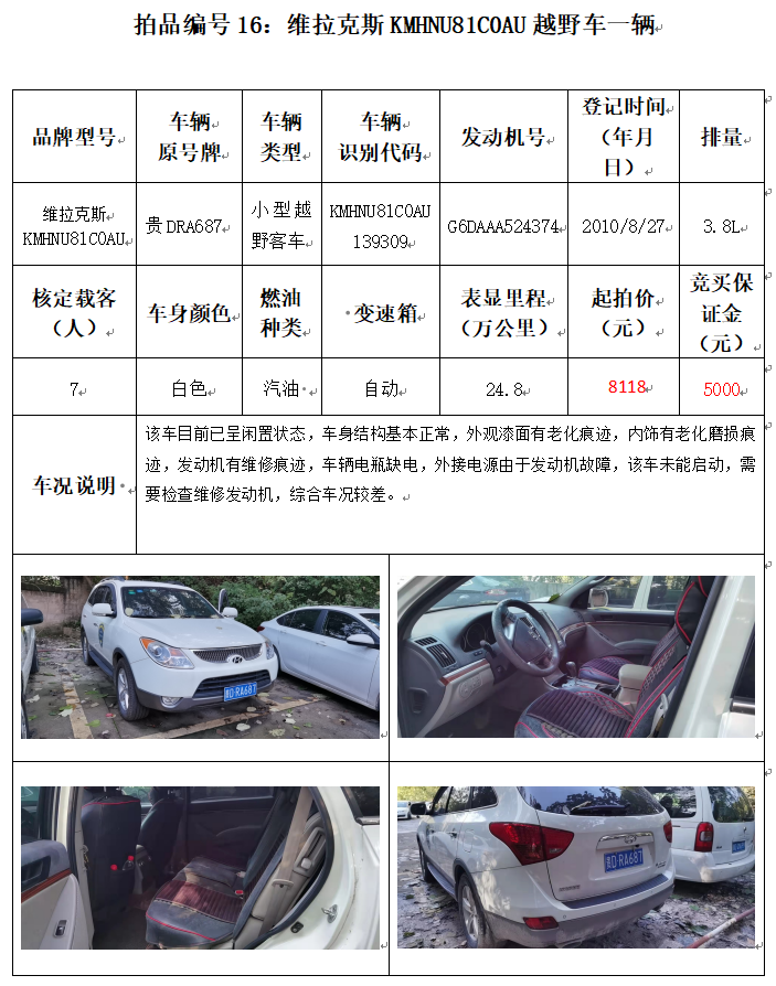 受委托,本公司定于2021年12月10日(星期五)下午14:00時(shí),在銅仁市碧江區(qū)川硐教育園區(qū)誠(chéng)信路銅仁市公共資源交易中心開標(biāo)六室(拍賣大廳)公開拍賣以下車輛: