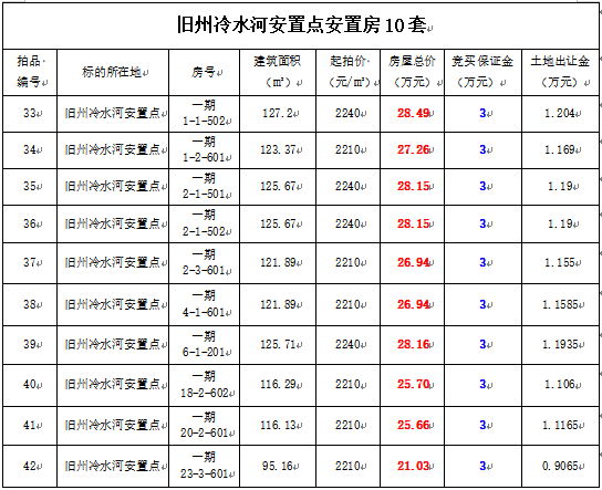 2、黃平縣舊州冷水河安置房10套,建筑面積:95.16—127.2㎡,起拍單價:2210—2240元/㎡,起拍總價:21.03—28.49萬元;