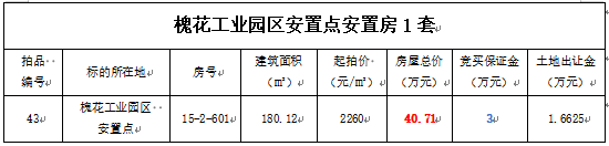 3、黃平縣槐花工業(yè)園區(qū)安置房1套,建筑面積:180.12㎡,起拍單價:2260元/㎡,起拍總價:40.71萬元