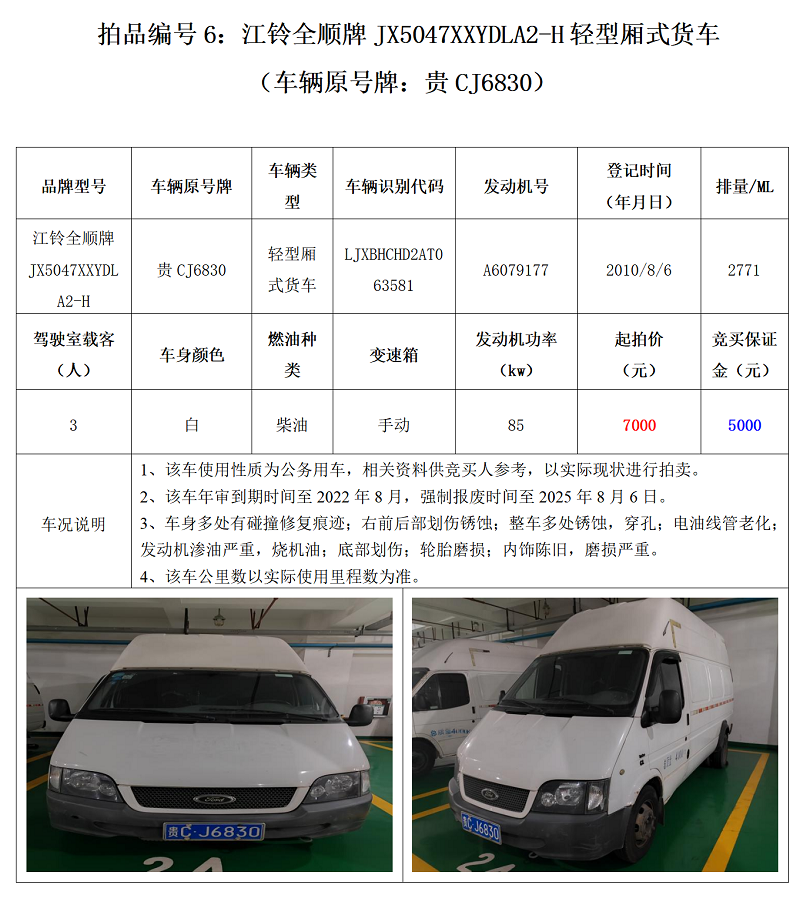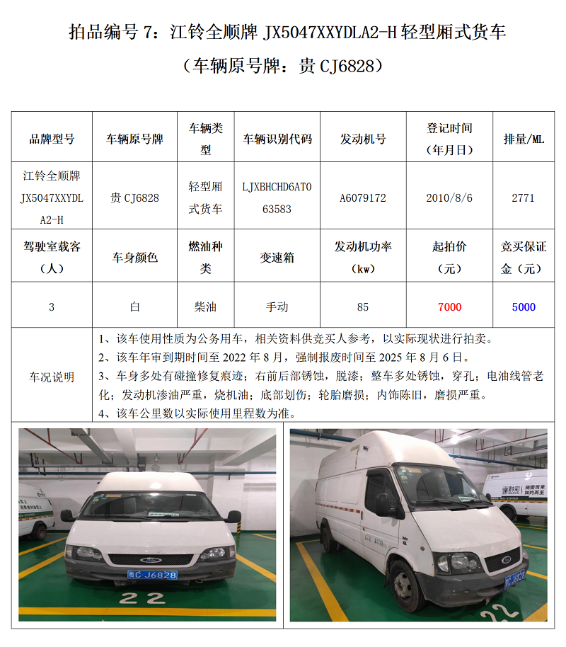 傳祺牌、福特牌、雅閣牌、紅旗牌、江鈴全順牌各類機動車,共計7輛。